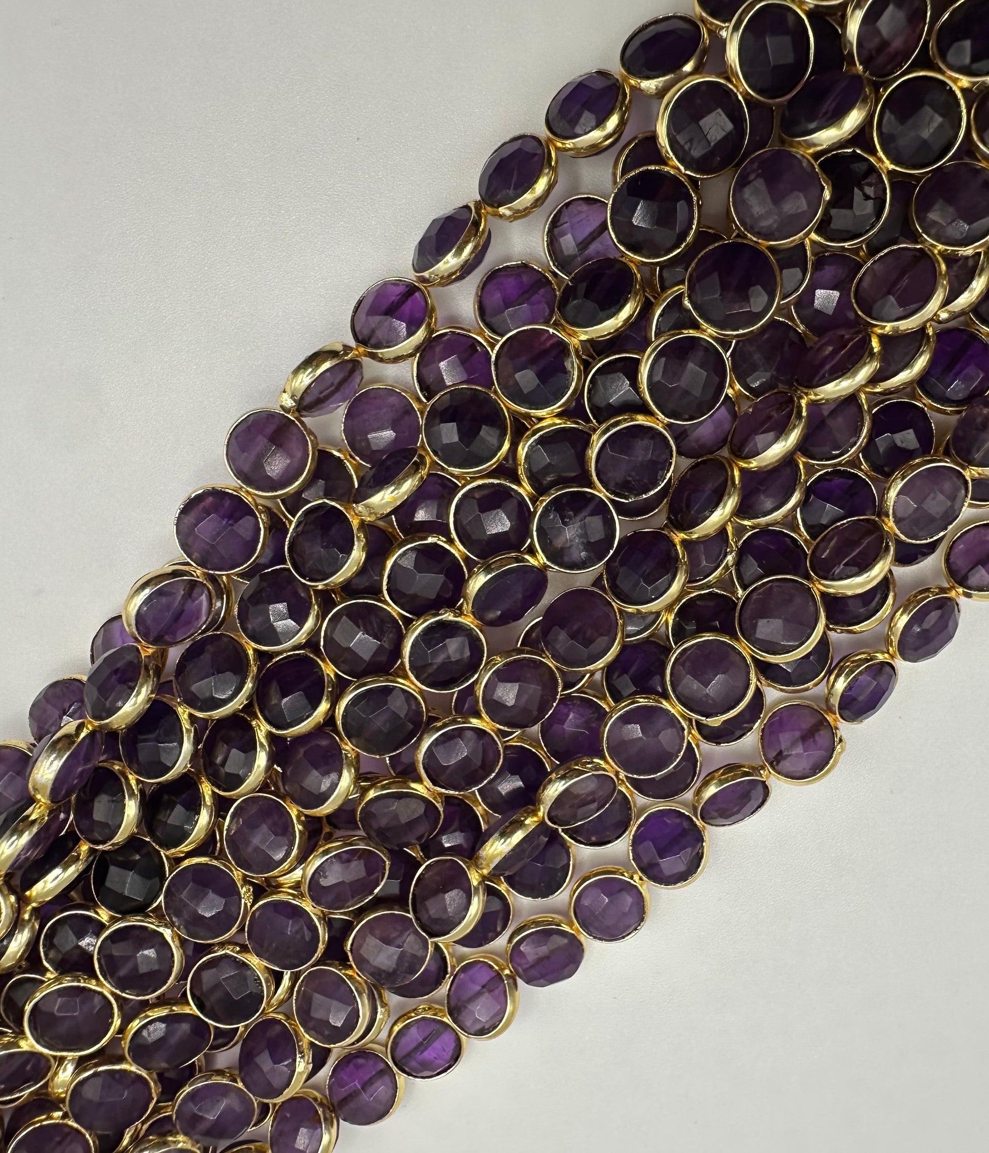Amethyst coin facetted bezel 6x8mm approx. 25 beads in a strands