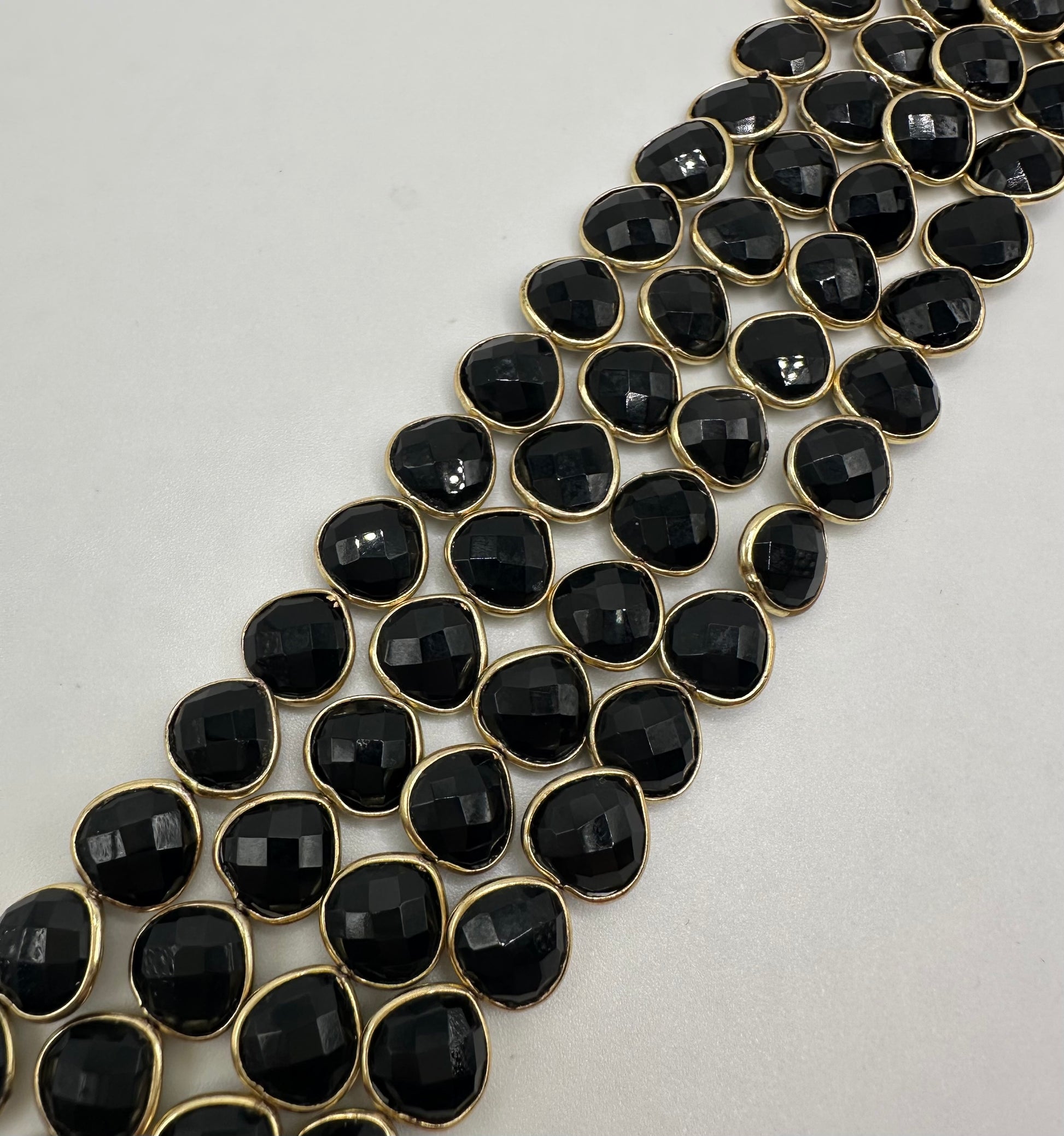 Black spinel facetted haertr bezel 7mm 8'' approximately 25 beads.