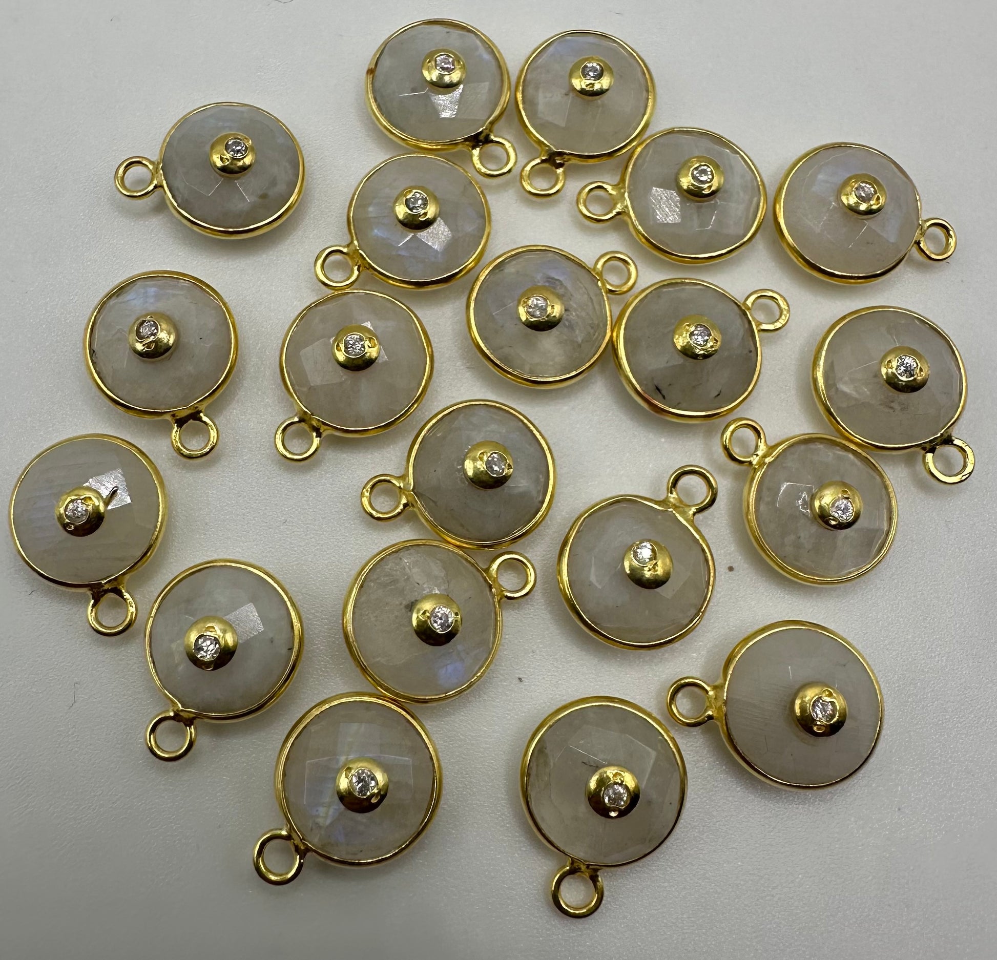 Rainbow moonstone 10mm 925 Vermeil bezel with 1.5CZ pendent sell by piece.