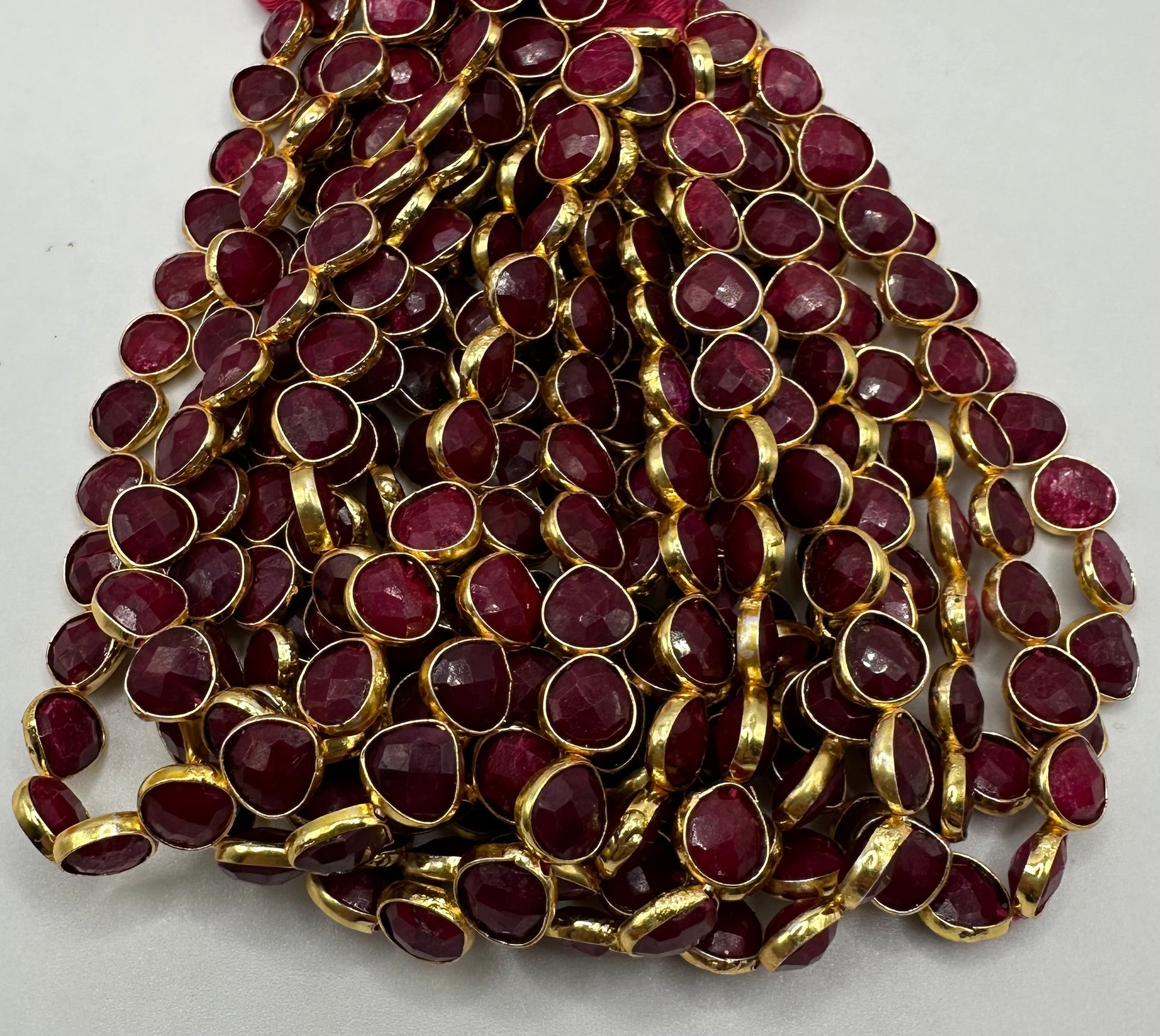 Ruby facetted heart 7mm bezel. Approx. 25 beads in a stands